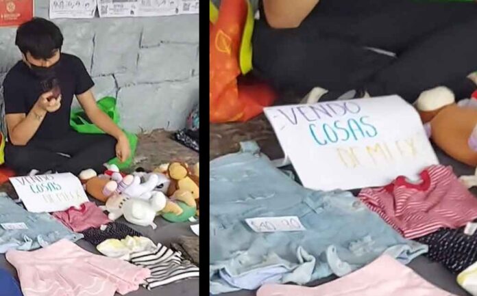 En las imágenes notamos –gracias a un pequeño cartel– que el joven aprovechó que rompió con su ex y en lugar de tirar o de plano quemar las cosas que le dejó, se puso a venderlas en un bazar. Y es que este chico tenía de todo, desde blusas y ropa en general, hasta peluches y otros artículos de su antigua pareja.