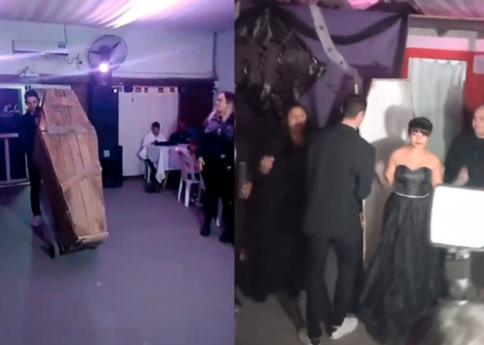 Ahora se hizo viral una quinceañera que sorprendió a sus invitados al llegar en un ataúd.